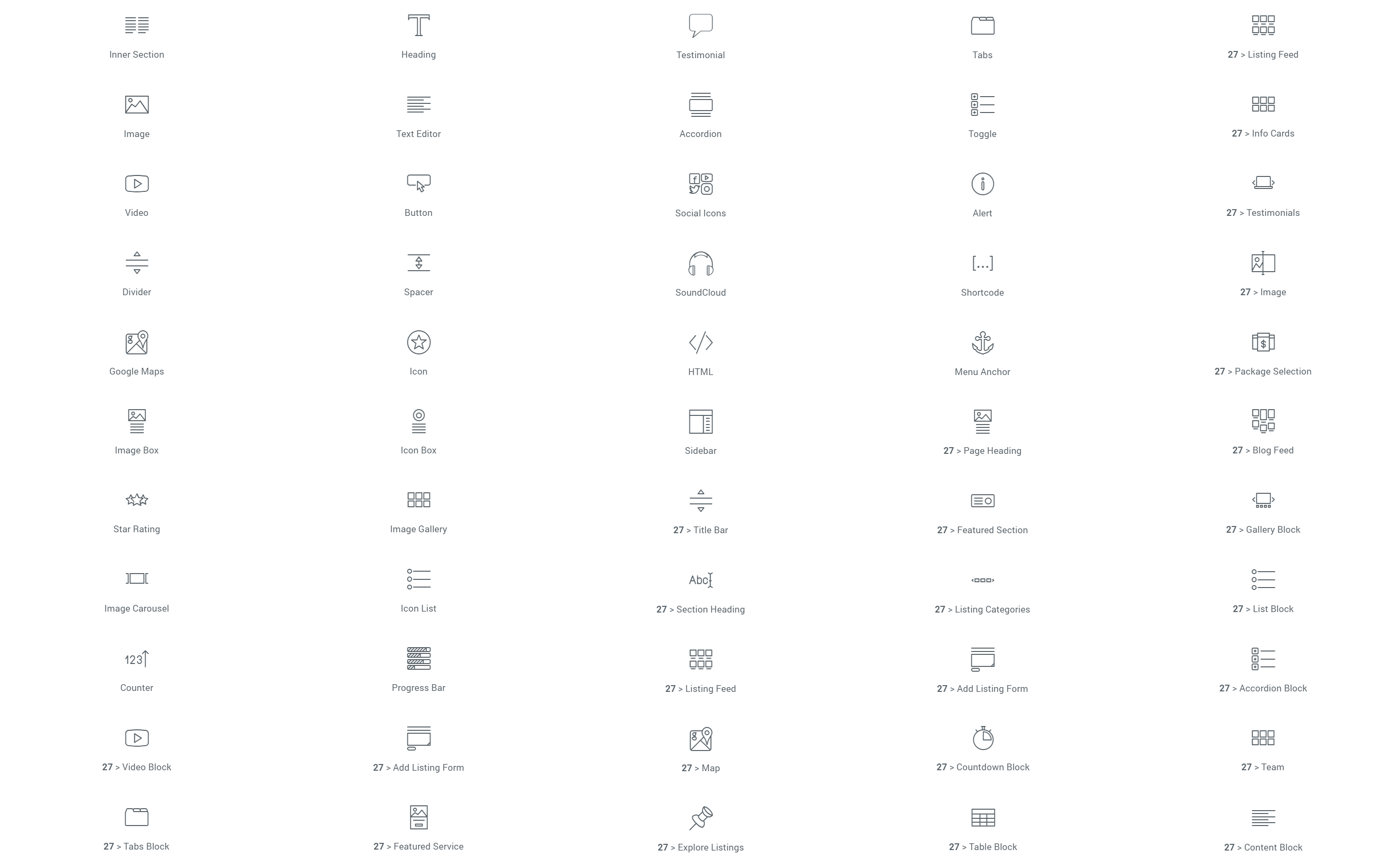 All elementor widgets Elementor widgets 50+ Elements available to design pages out of the box. Add more using elementor plugins and addons